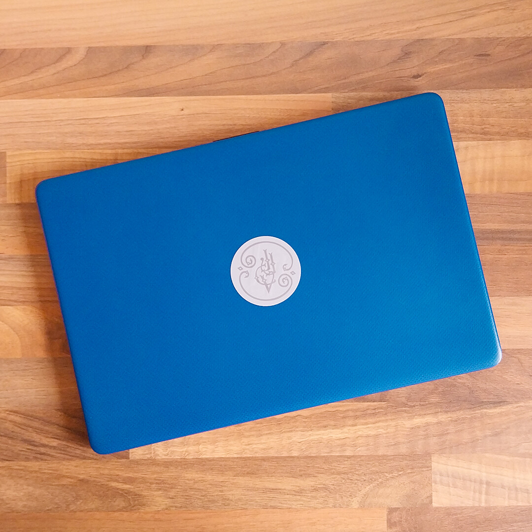 My father asked me if I could make some kind of sticker to personalize his laptop to cover the brand badge, HP. I don’t really know why, he just wanted to hide it haha. Before that, he’d covered it with an Apple sticker, which makes it even funnier. He doesn’t particularly love one brand or dislike the other, so don’t ask me, these are just his things haha.