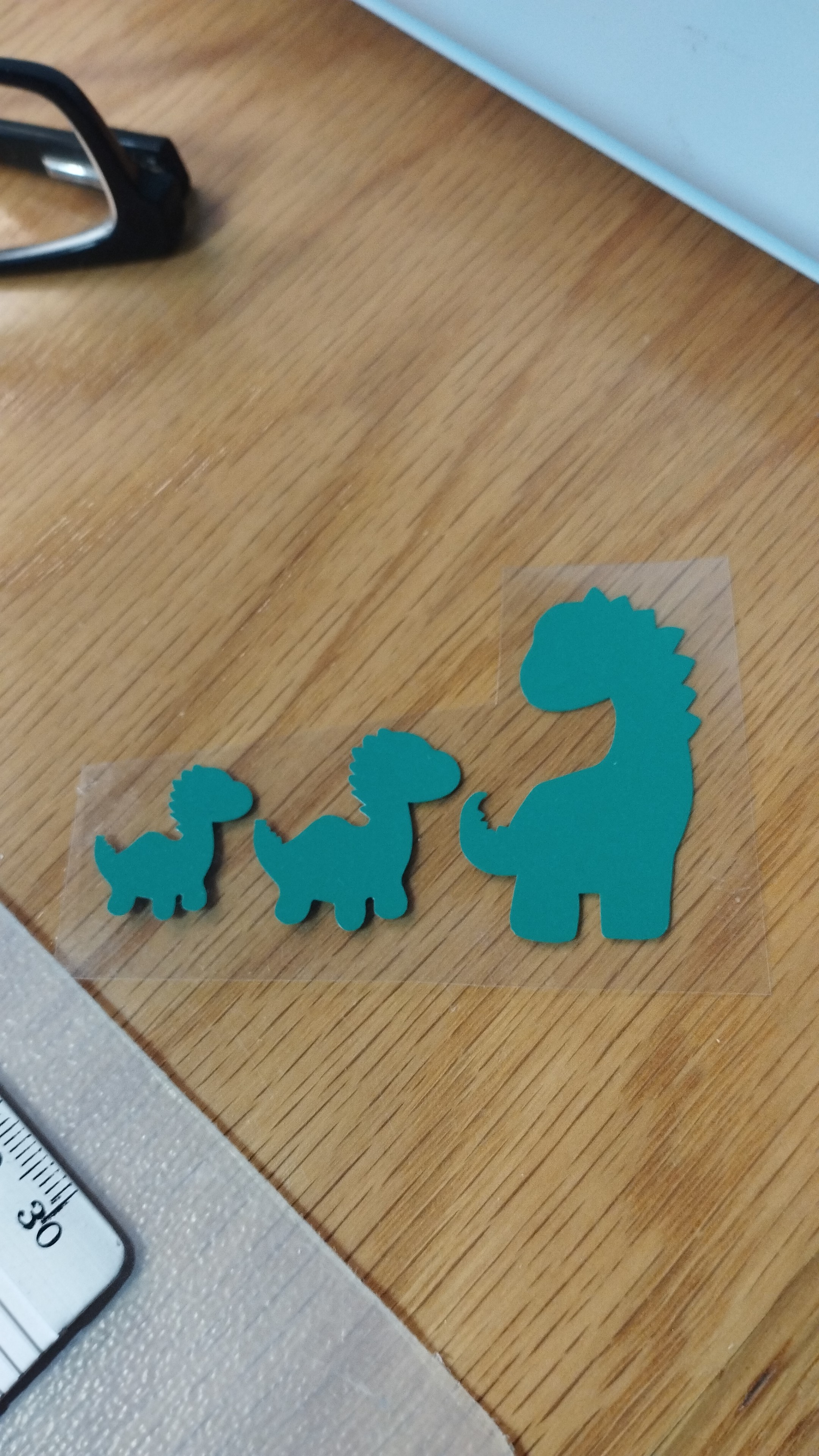 I offset the letters for both “MAMI” and the names since they didn’t have continuous lines, to prevent micro-cuts. I added “Mama Dino” and “Mini Dinos” from the program’s library because it seemed like a perfect representation of how my friend’s kids follow her everywhere—and they’ve been obsessed with dinosaurs lately.