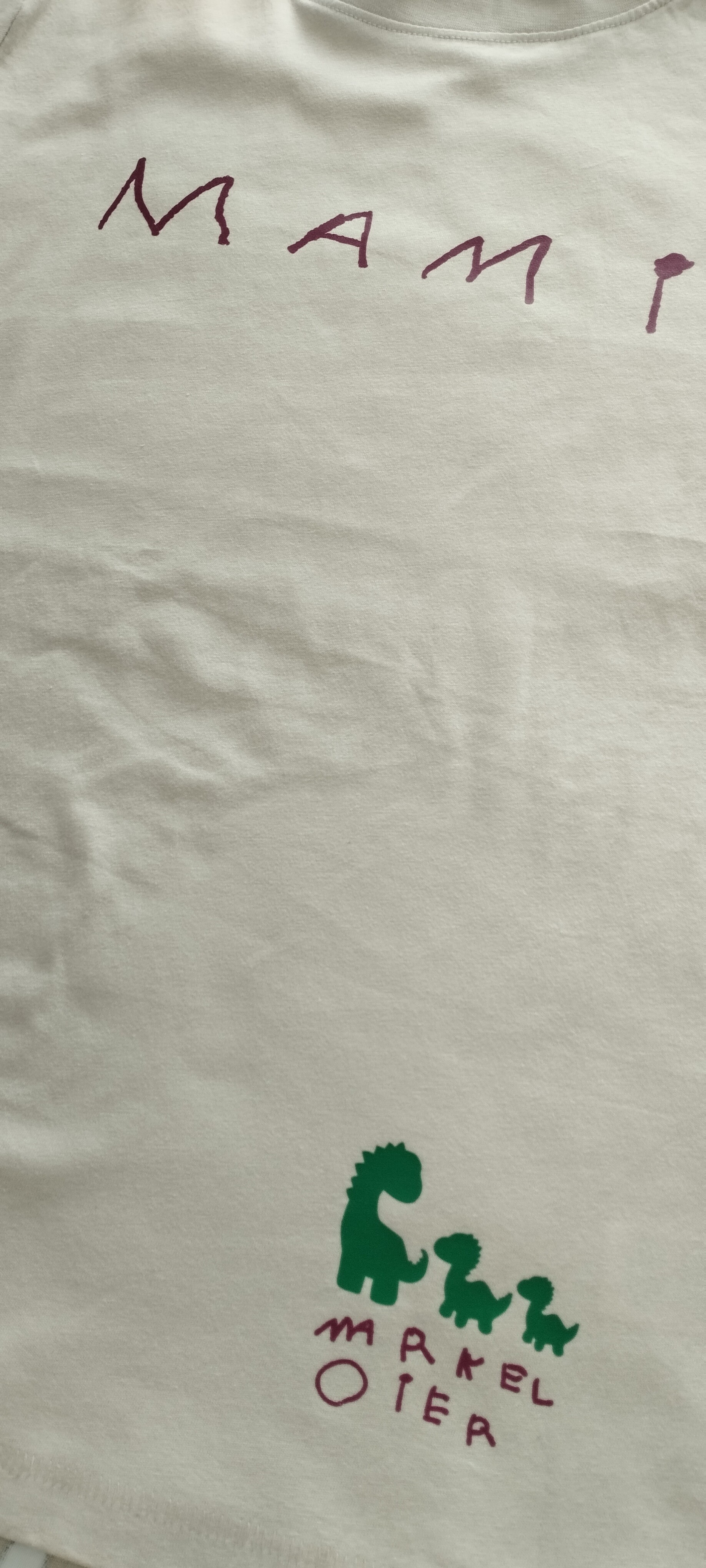 I bought a plain T-shirt and chose burgundy and green for the customization.