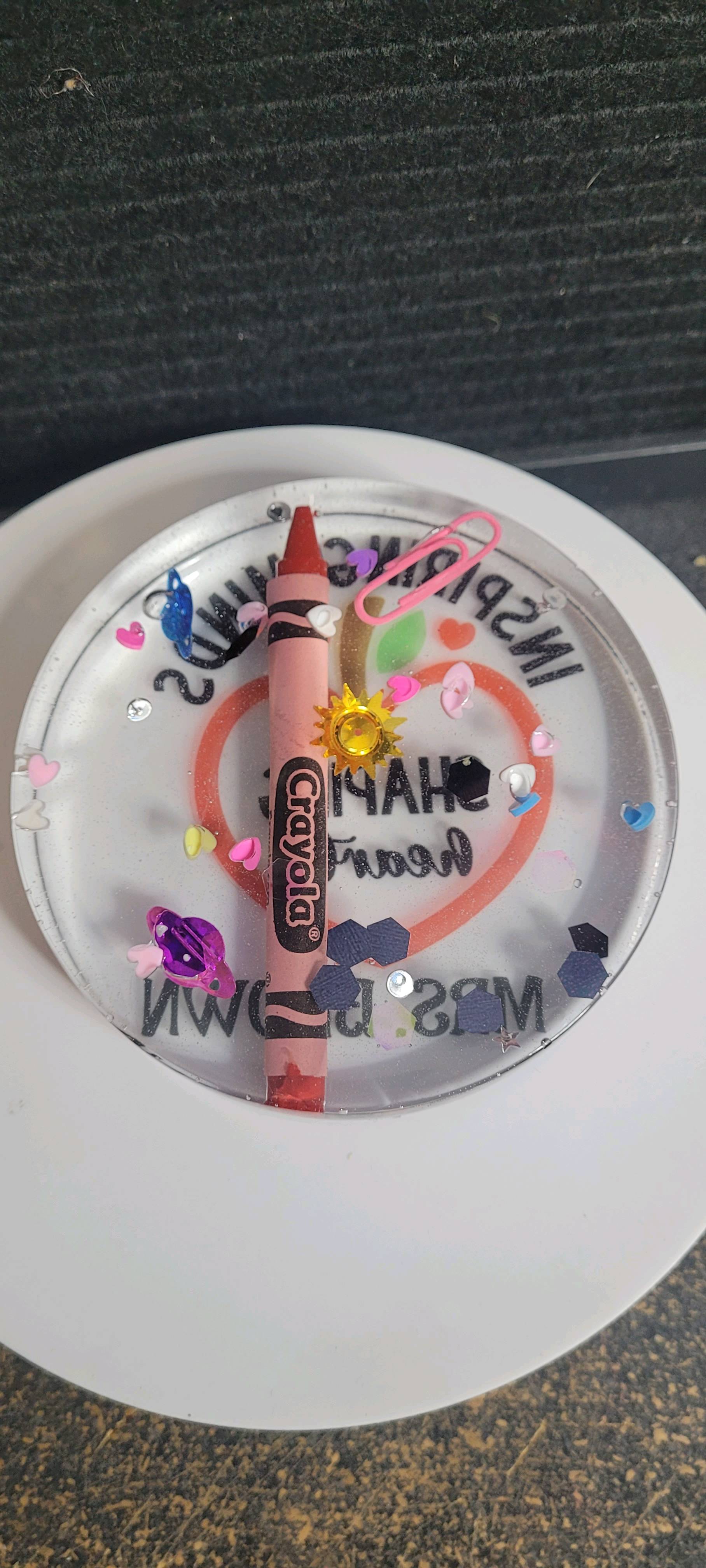 For the resin, I used ErCortArt Resin and Hardener, pouring everything into my Let’s Resin molds. To bring in that fun classroom energy, I added real crayons, mini pencils, paper clips, push pins, and other little school-themed pieces I grabbed from Amazon.