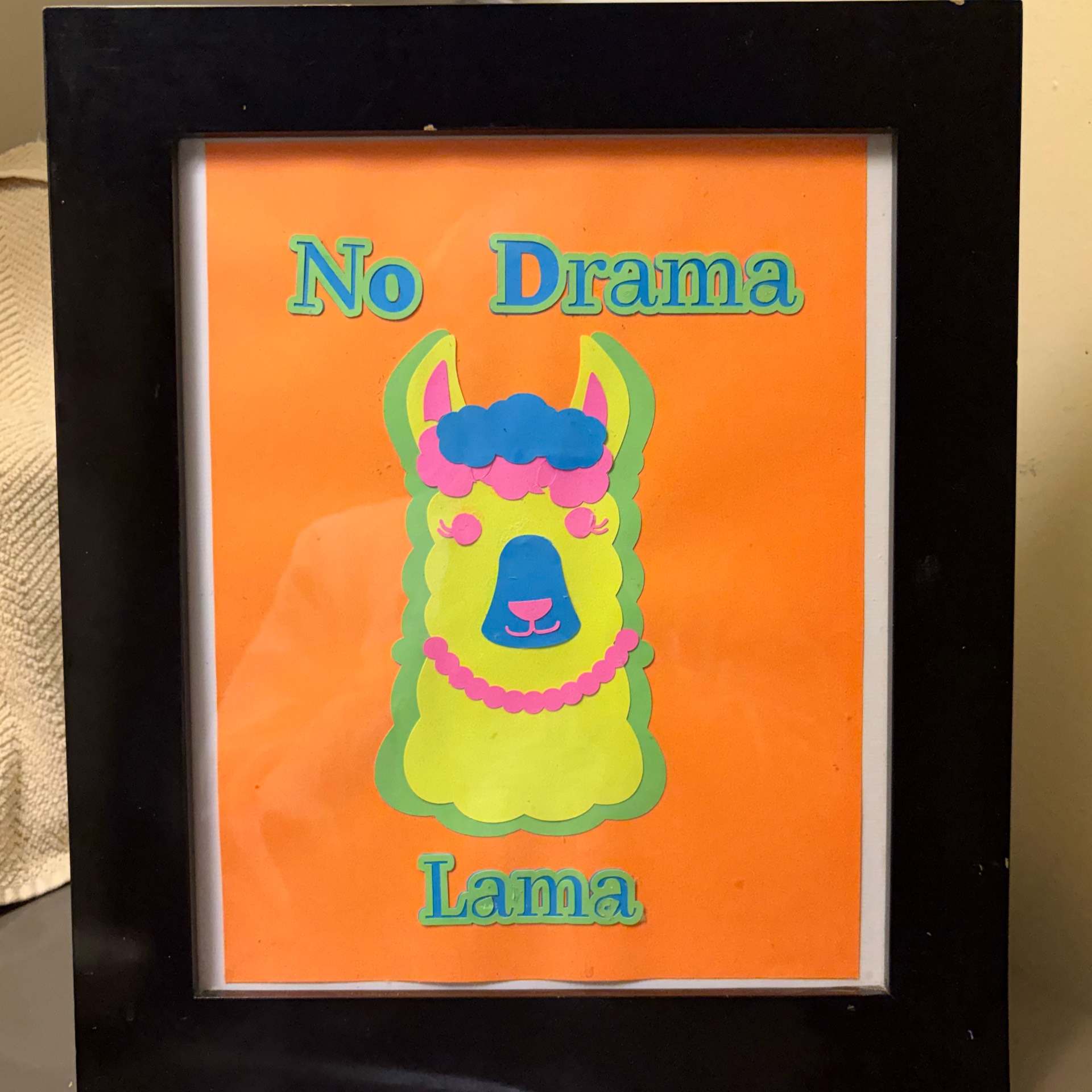 This bright little llama is living its best, drama-free life—rocking bold colors, closed eyes, and zero worries. With a pop of neon and a whole lot of personality, this piece is a cheerful reminder to keep it cute, calm, and completely unbothered.
