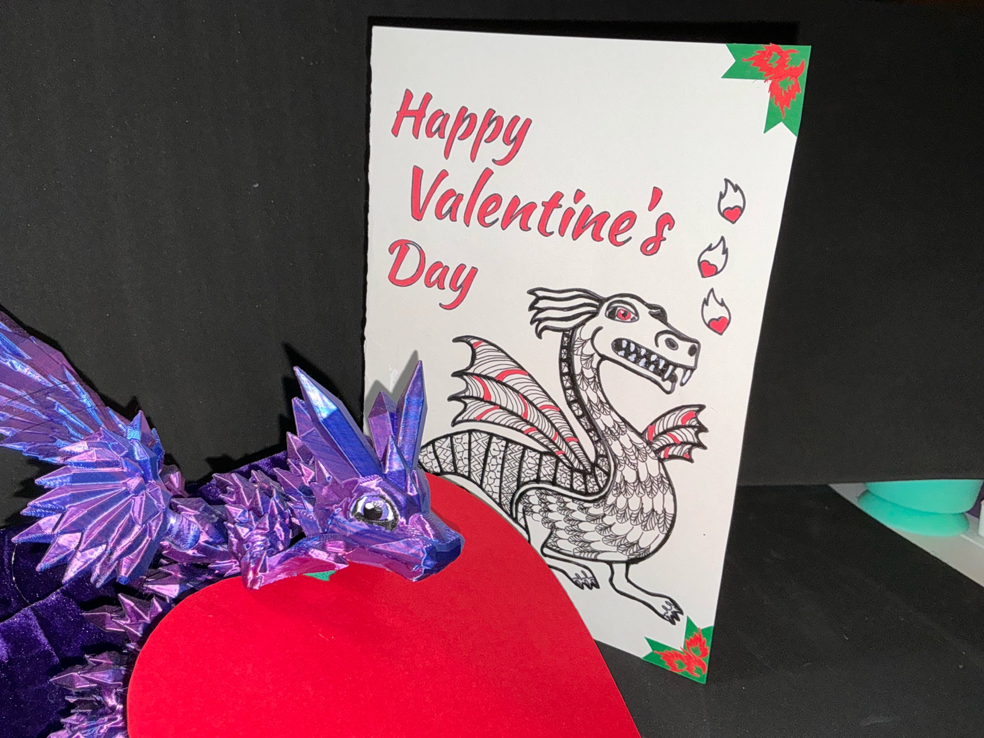 Original poetry written for my husband who rescued me from my circumstances. His love of all things rennaissance and the fact that we would be at the Renn Faire on Valentines Day called for a very special card. This is on cardstock using all Loklik artwork drawn and then filled in with zentangle. Banners and flames were added last.