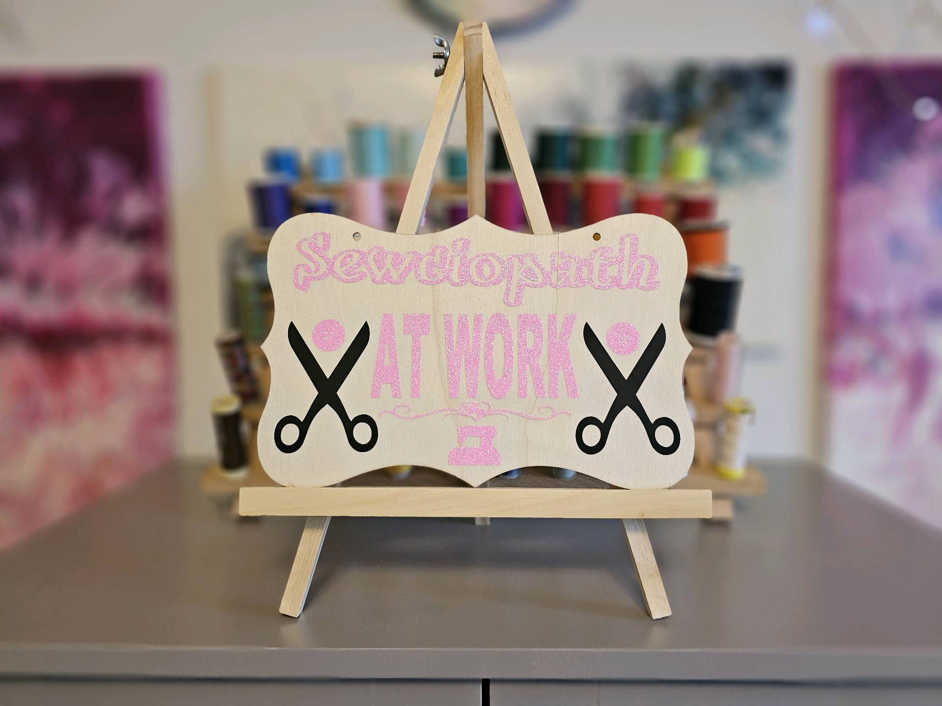 “Sewciopath at Work” Sign – Glitter HTV, Clean Layers & Craft‑Room Humor