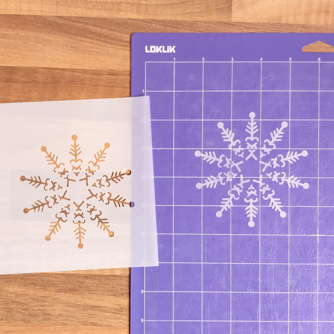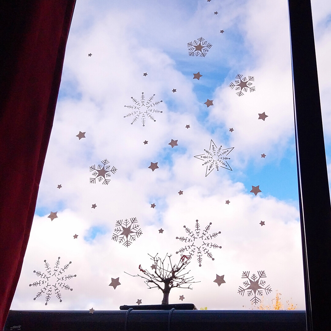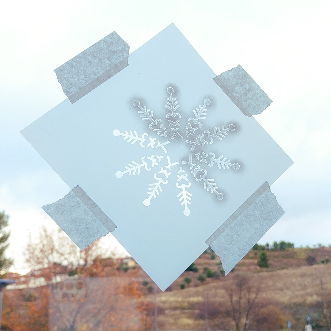 Every time I was cutting using the star assets I uploaded to IS, the leftover pieces kept catching my eye. Almost as beautiful as the cut itself. They made me think that decorating my windows with snowflakes could be a lovely idea. I considered permanent vinyl, but it felt like a waste for something so ephemeral. Besides, those leftovers were clearly calling out to me: stencil, stencil.