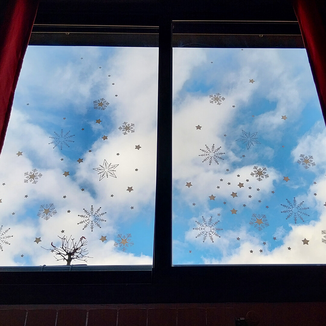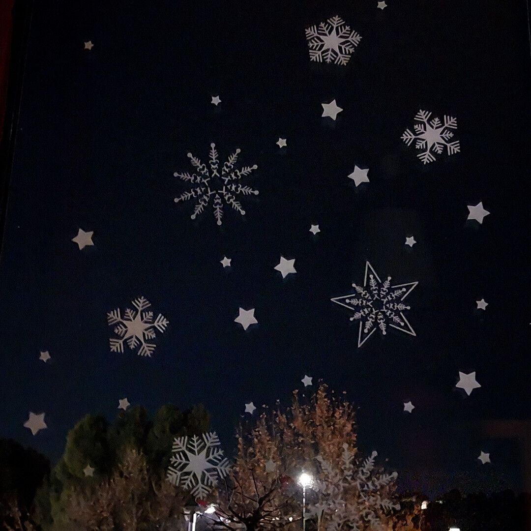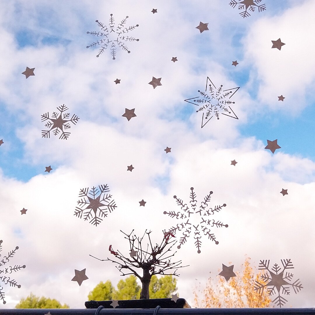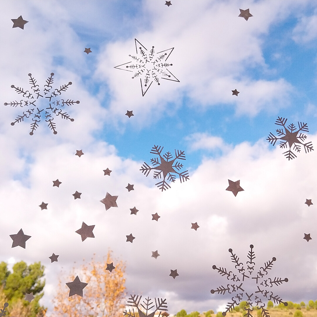 Every time I was cutting using the star assets I uploaded to IS, the leftover pieces kept catching my eye. Almost as beautiful as the cut itself. They made me think that decorating my windows with snowflakes could be a lovely idea. I considered permanent vinyl, but it felt like a waste for something so ephemeral. Besides, those leftovers were clearly calling out to me: stencil, stencil.