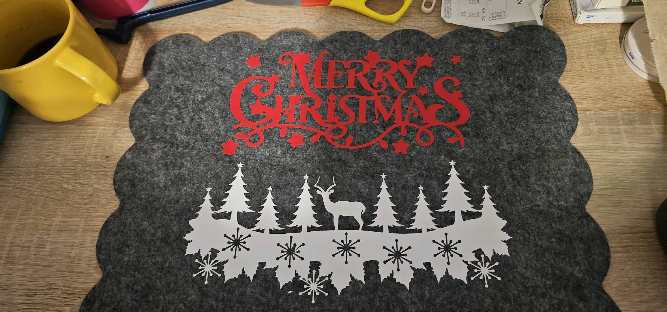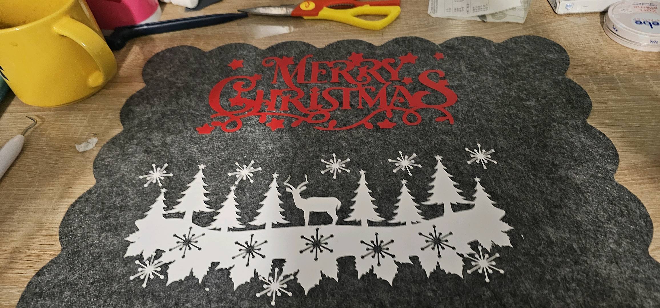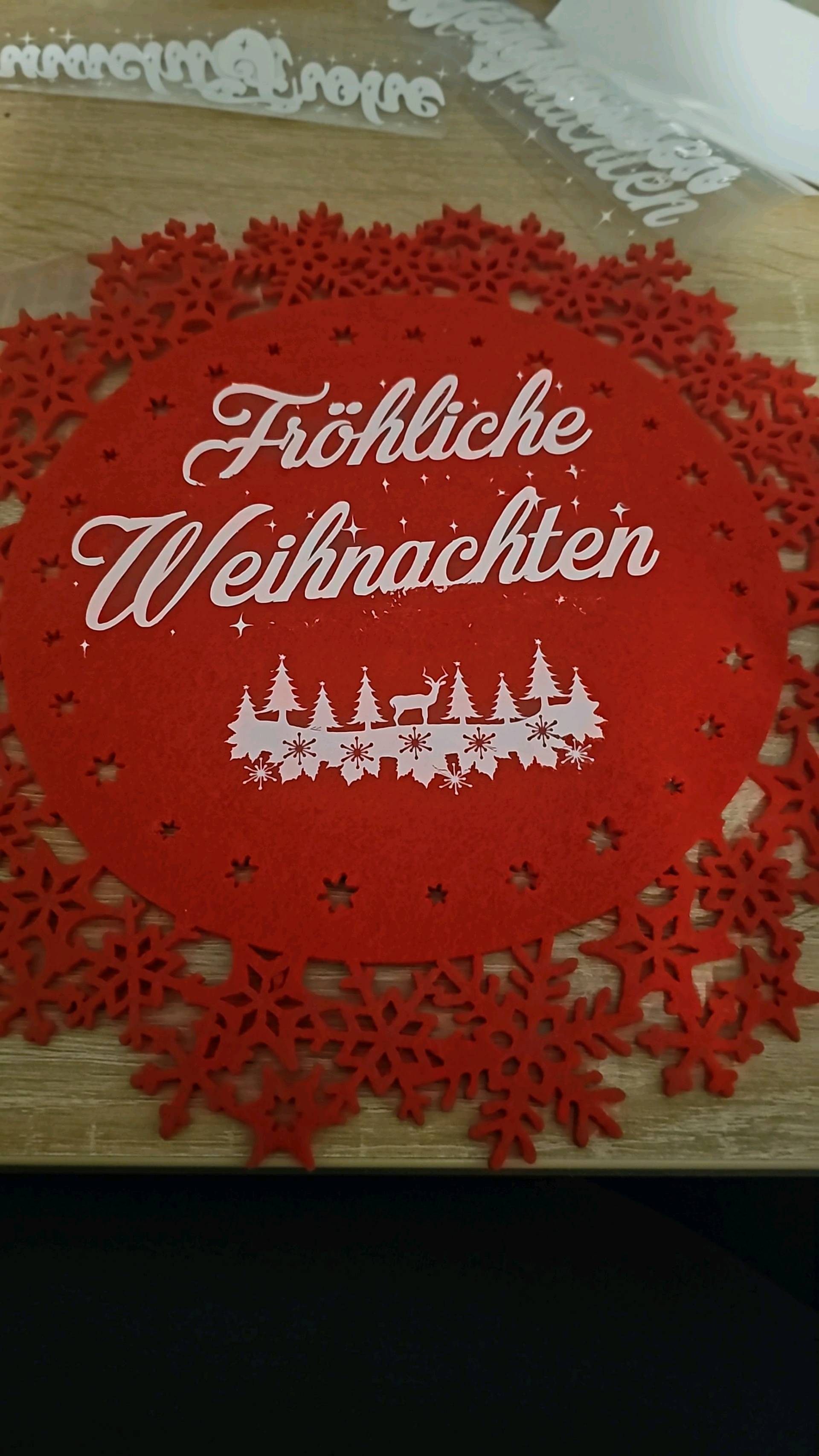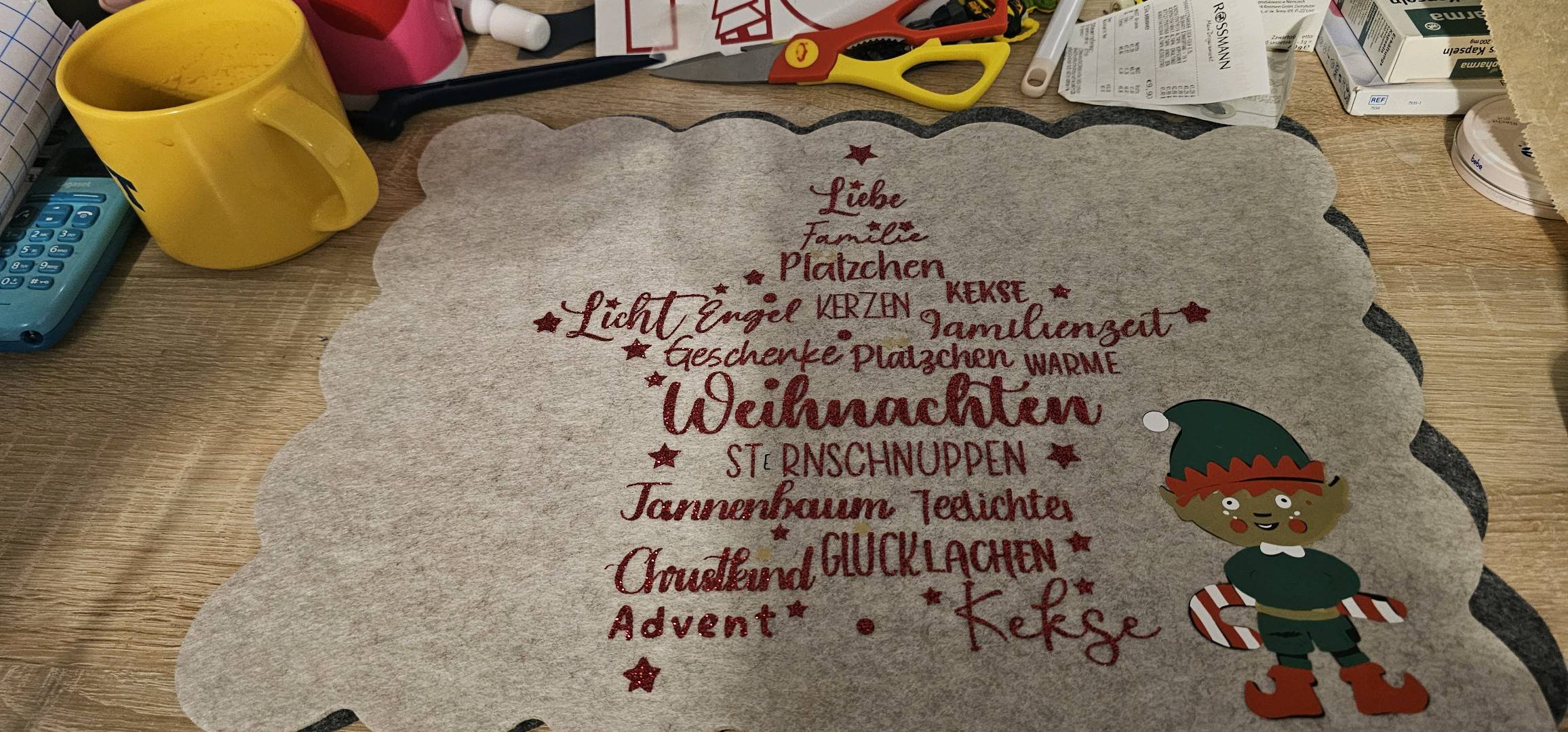 selbst gemachte geschenke aus filzuntersetzer beplottet mit weihnachsmotiven.