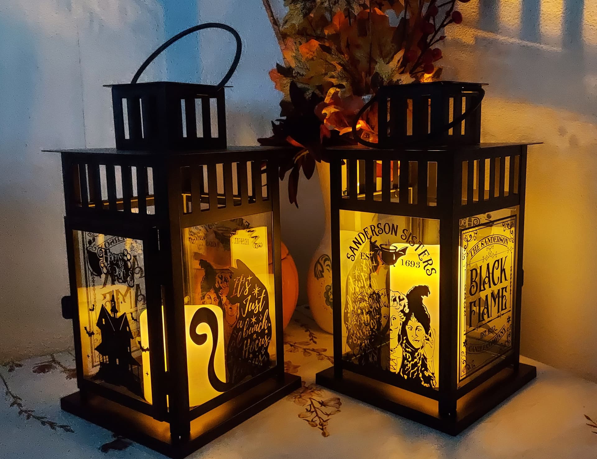A small addendum for the sake of completeness: I bought the motifs on Etsy, the idea/design of sticking it on a lantern and ironing it on a pillow is mine.