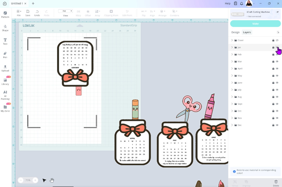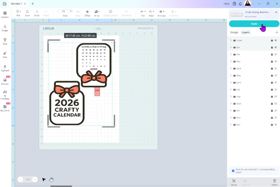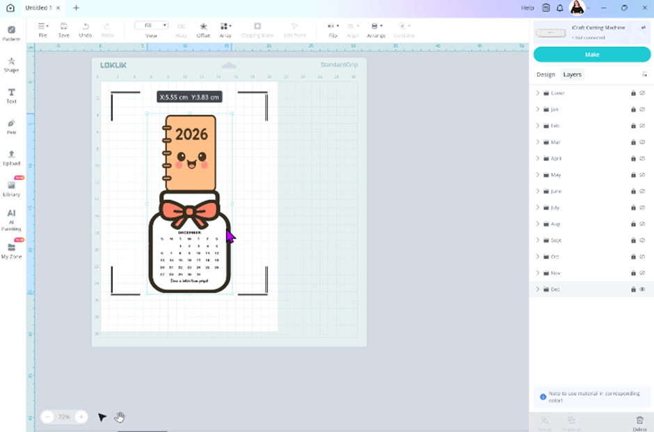 This step‑by‑step tutorial walks you through creating your own cute, crafty desk calendar using my custom design in LOKLiK IdeaStudio. I guide you through preparing the design, cutting each piece, and assembling the final project — and the finished calendar makes an adorable addition to any craft space.