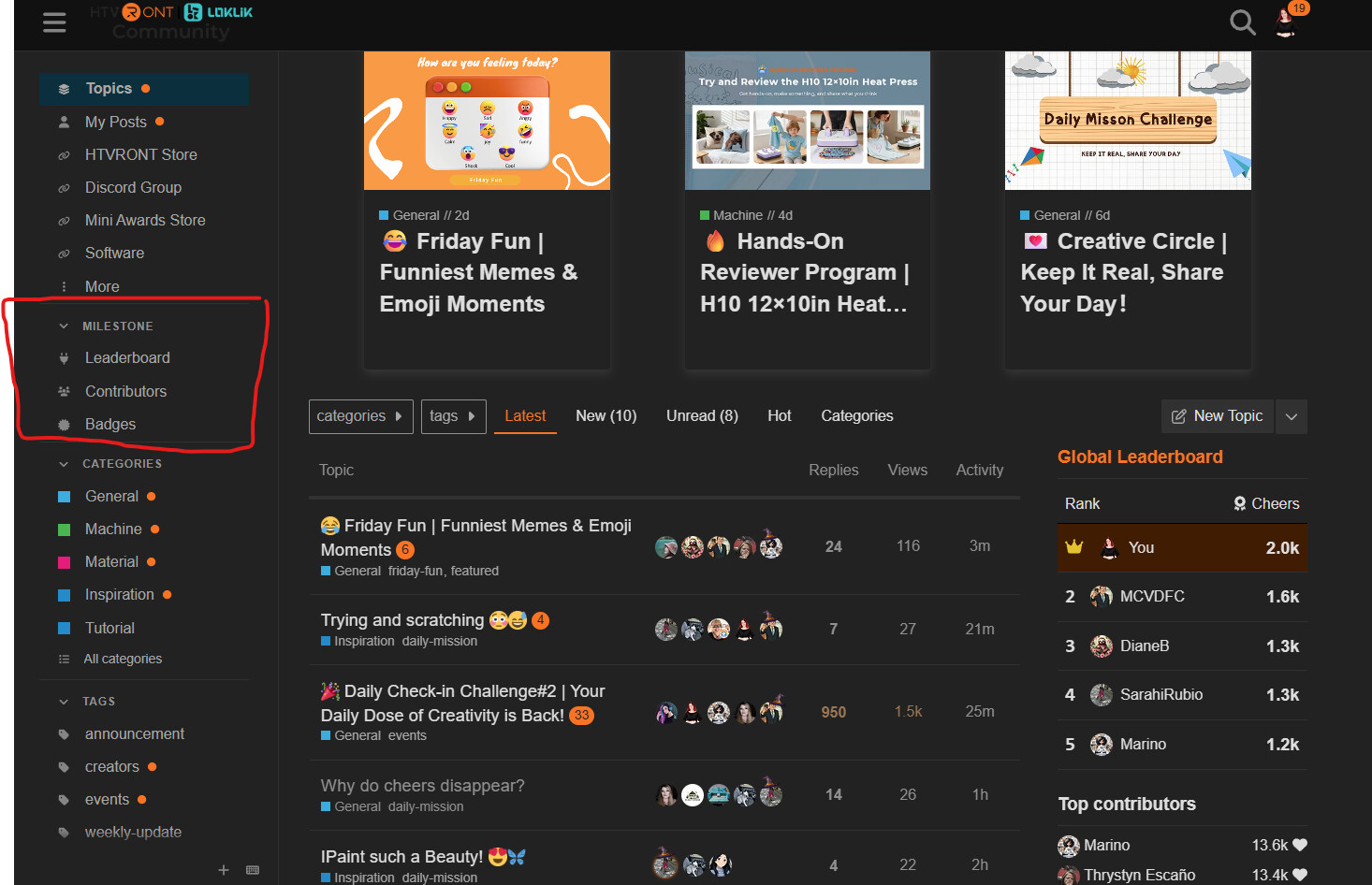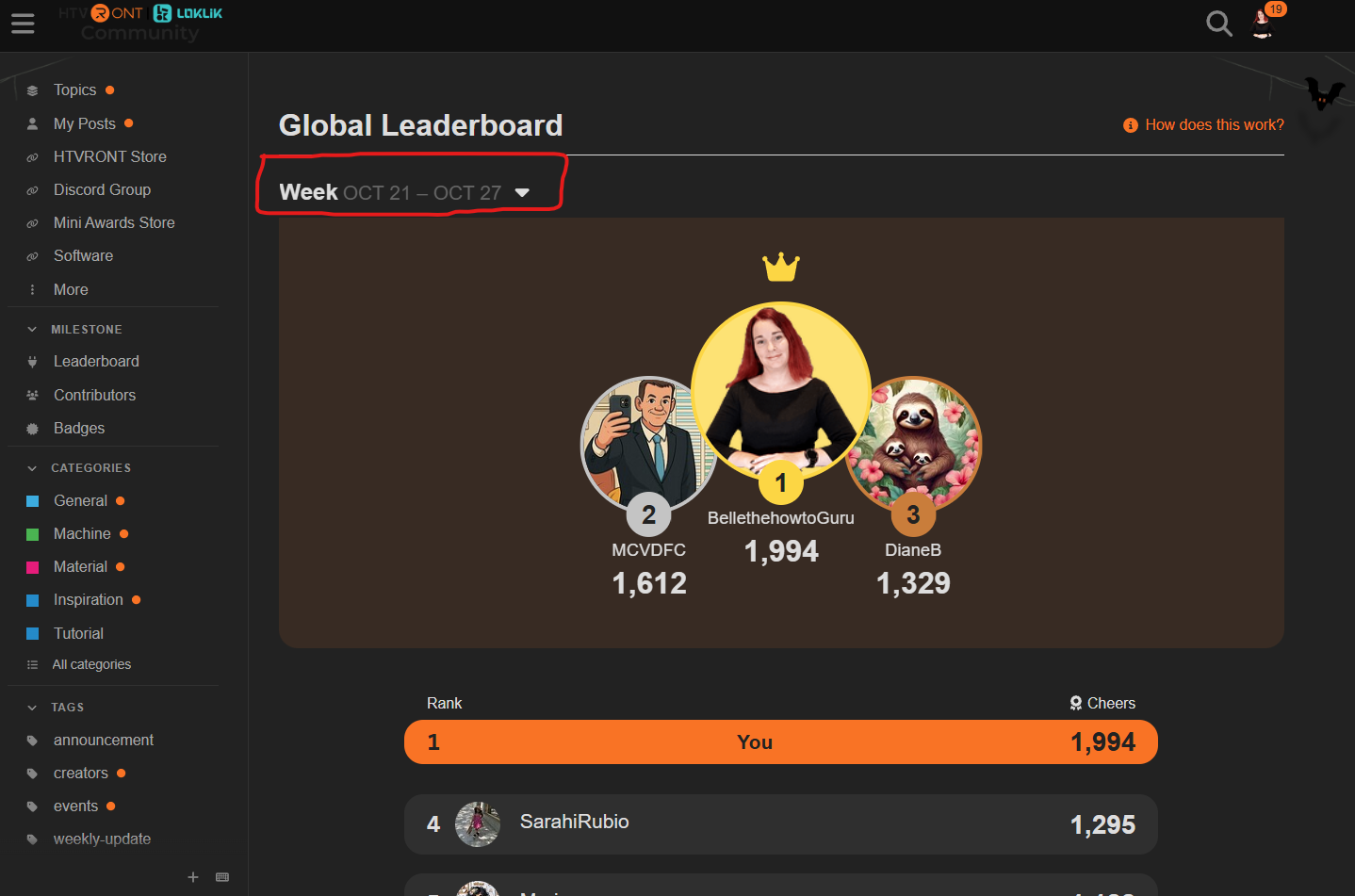 You can choose daily, weekly, monthly, quarter, year or all time. All time will show you the total amount you have earned since the first day you joined the community. This is a good way to track your progress as it won’t fluctuate unless you redeem your cheer points.